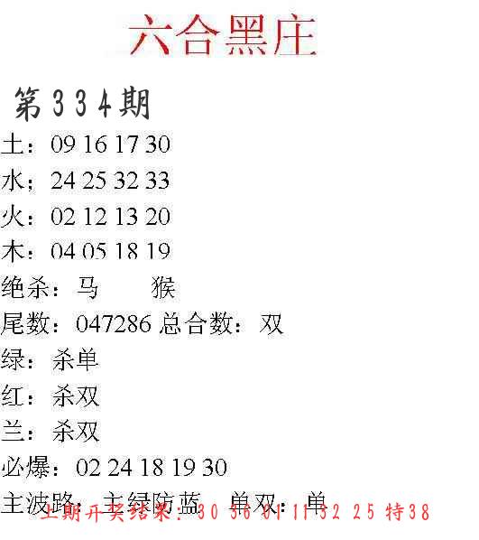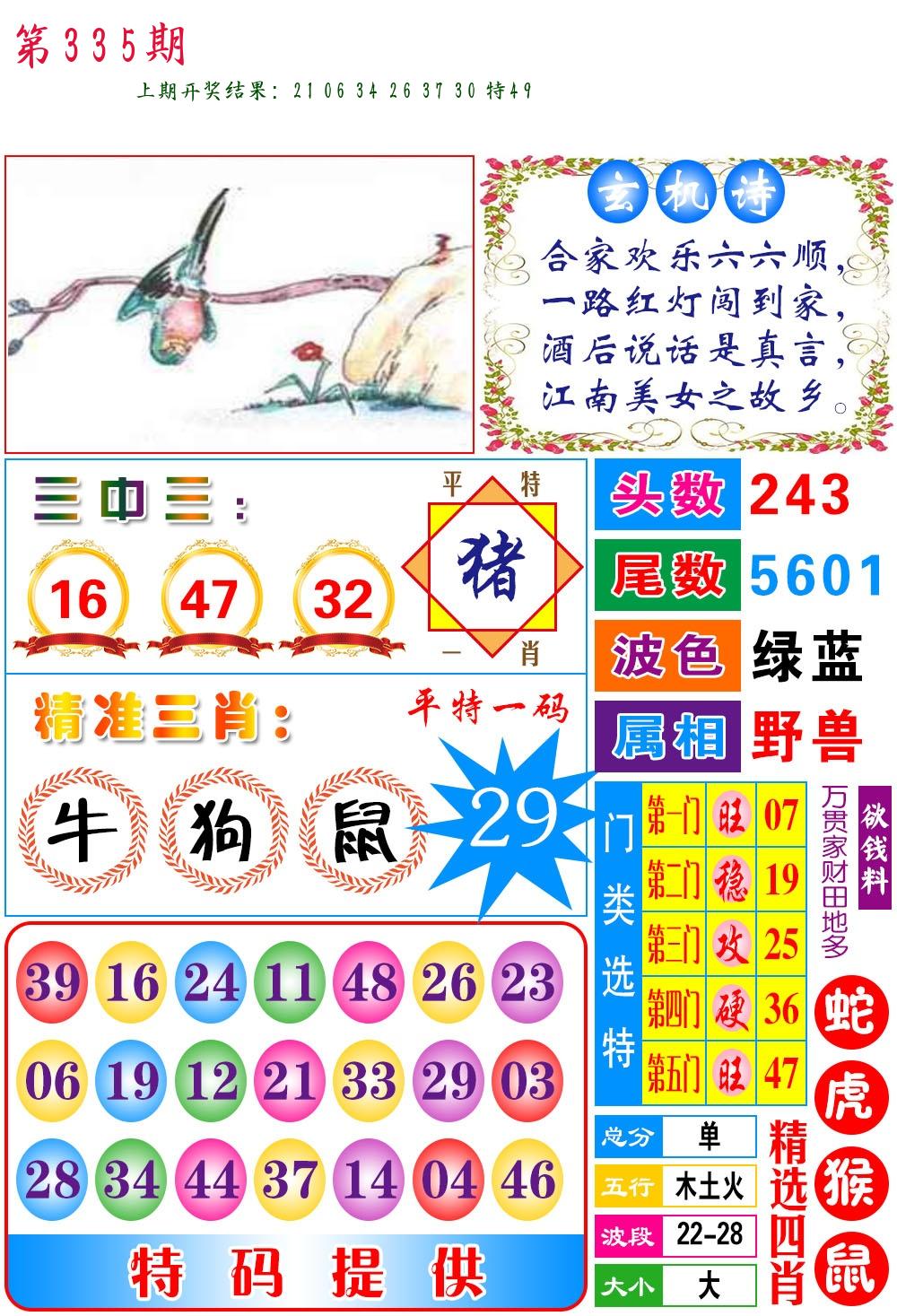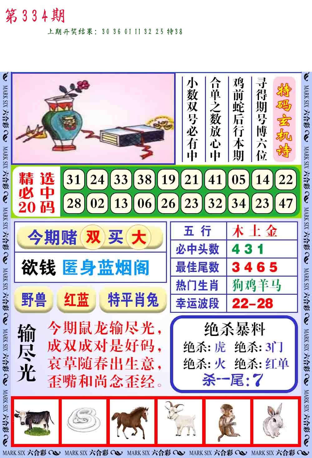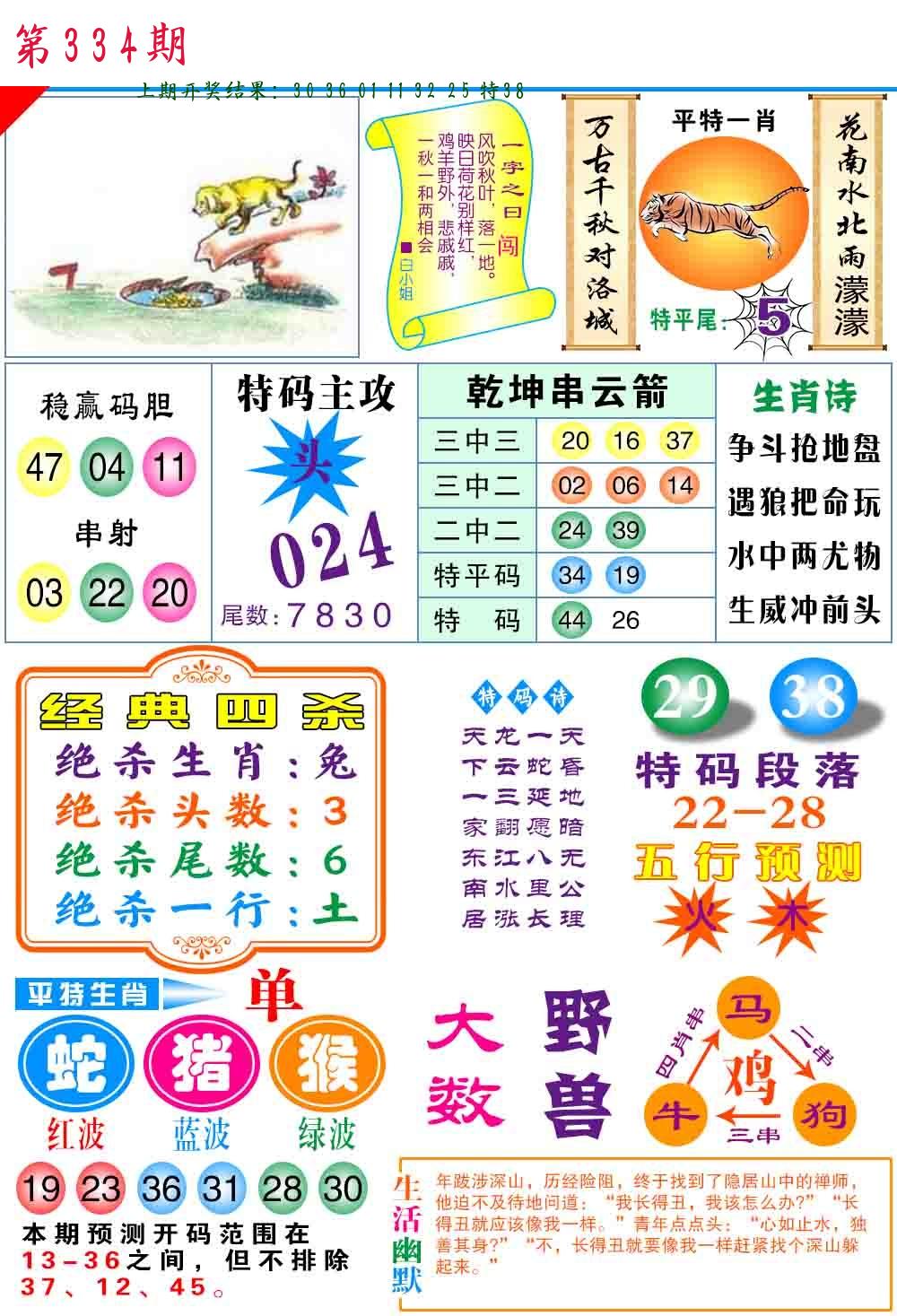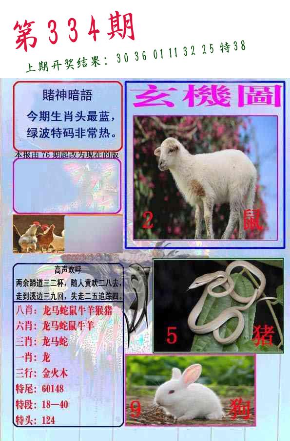 334期 家 【猪马牛】 野 【猴蛇兔】开 ??????? |