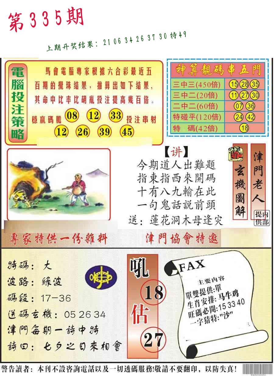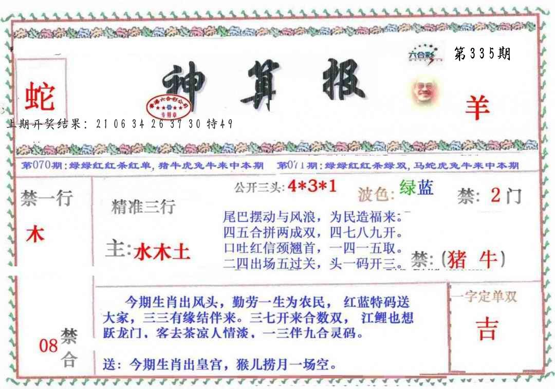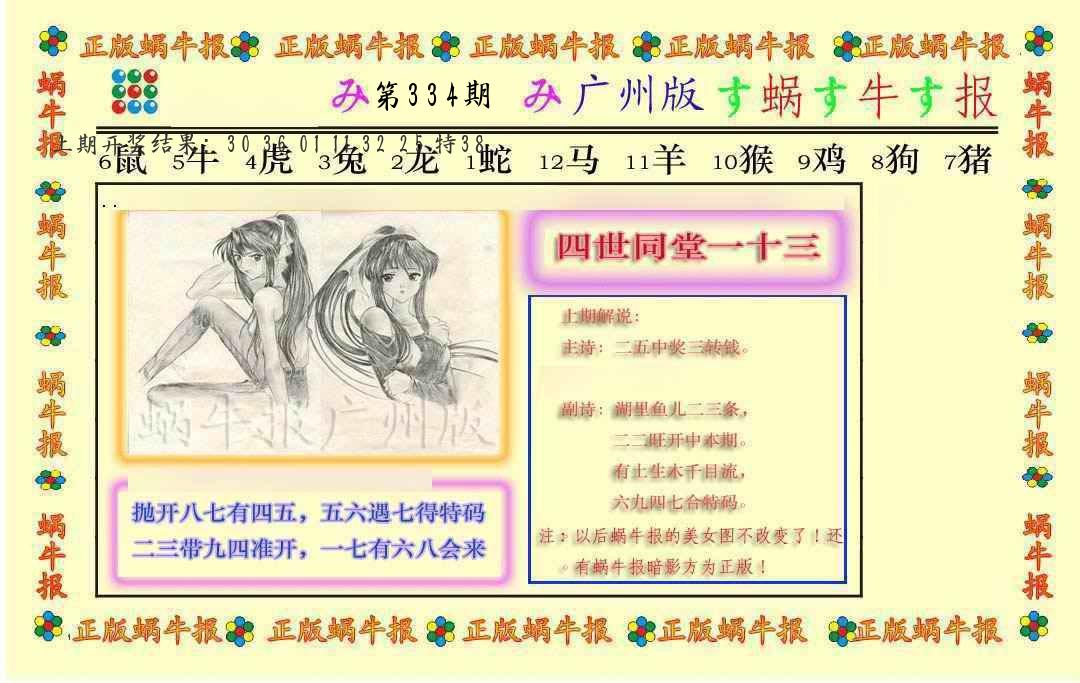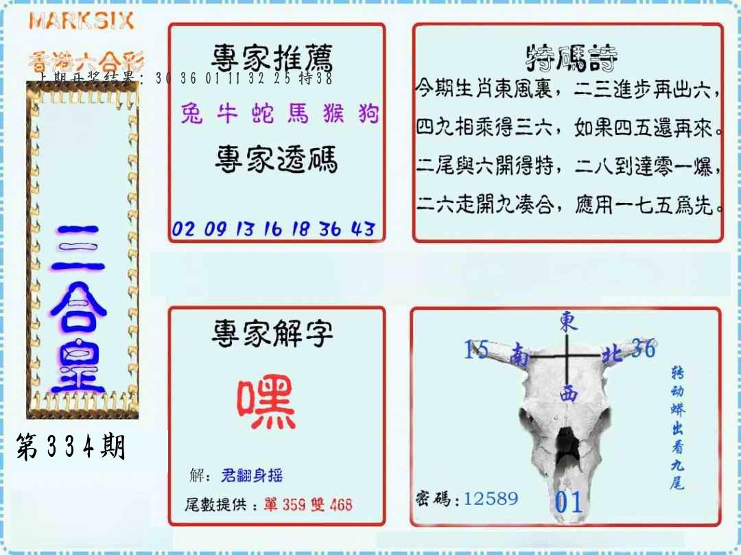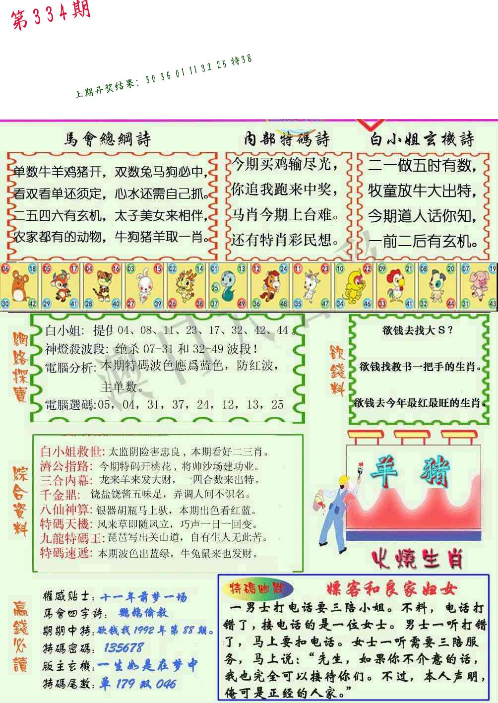 334期 家 【猪马牛】 野 【猴蛇兔】开 ??????? |