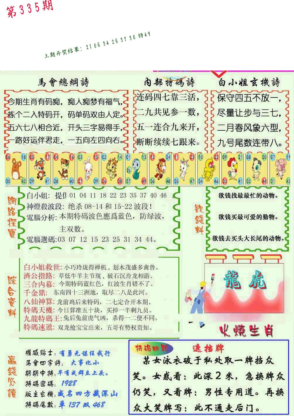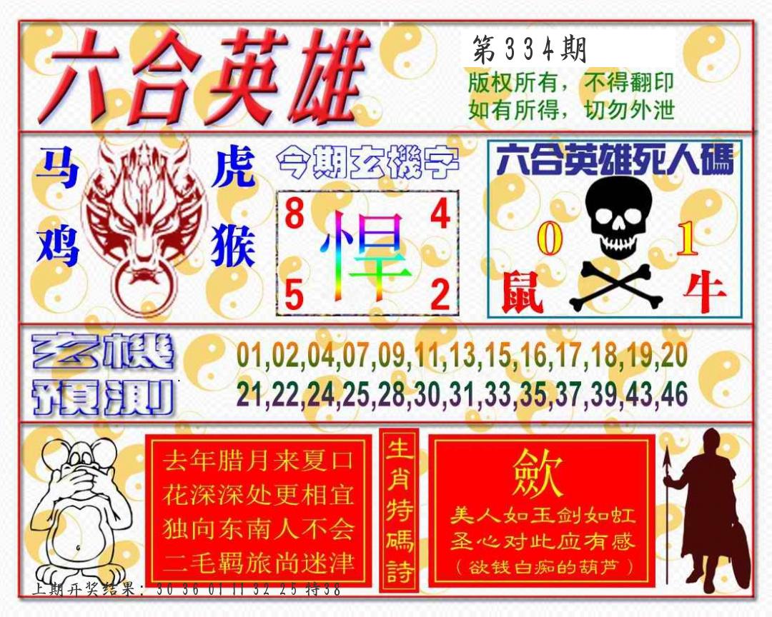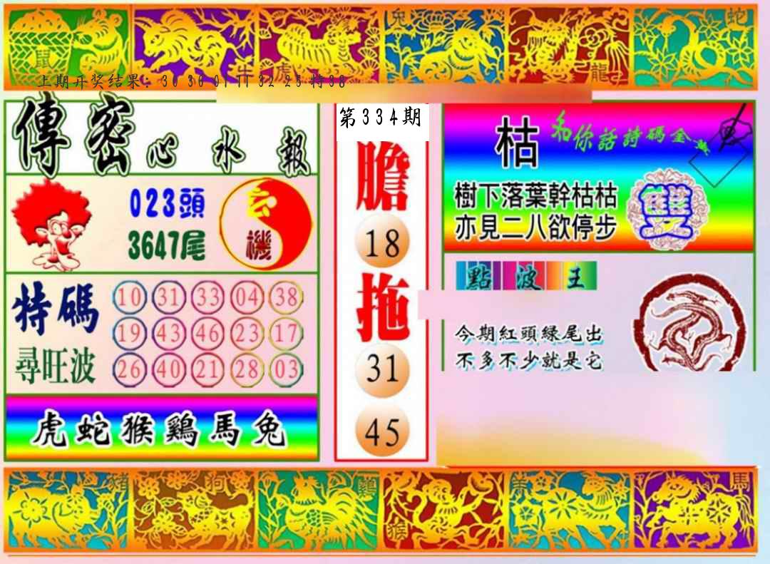 333期 家 【猪鸡马】 野 【猴龙鼠】开 38龙对 |