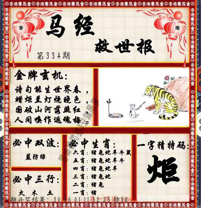 330期绝杀一波 【蓝波】 开 28虎对 |