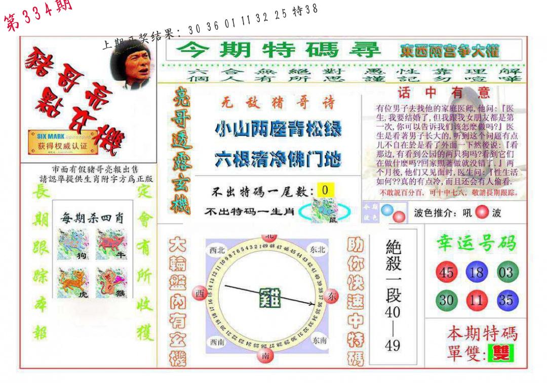 | 334期推荐七肖: 猪鸡牛猴狗马兔 -平均压 |