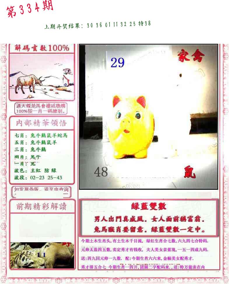 334期家野(2)肖 【家禽+虎兔】 开 ??????? |