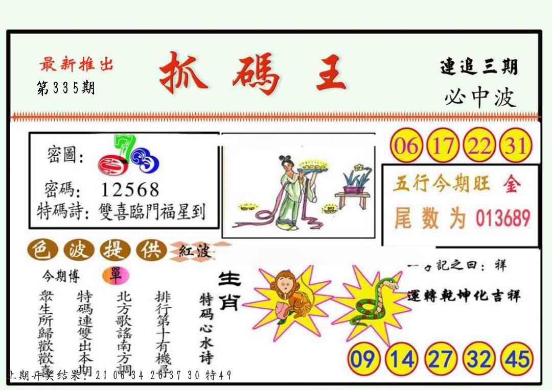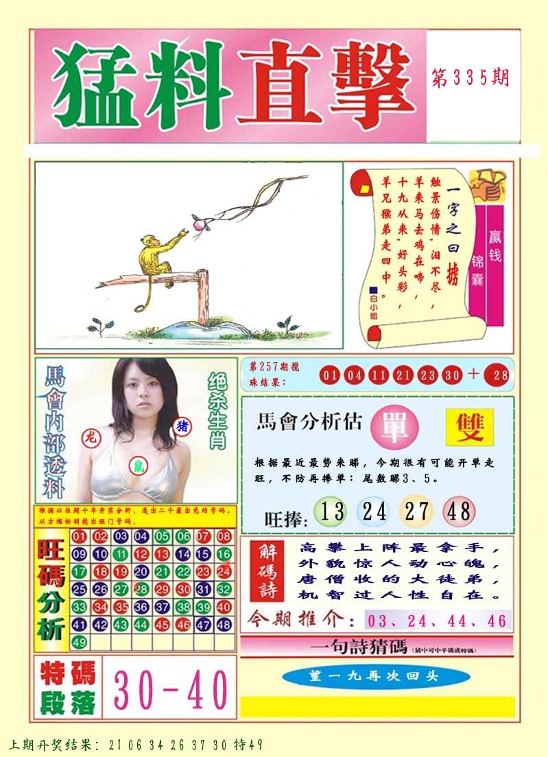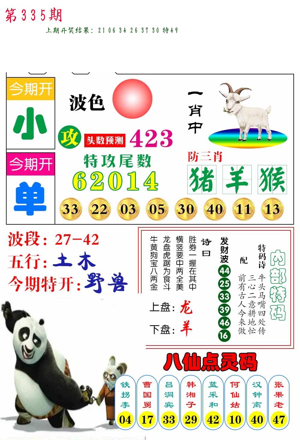 327期 家 【羊鸡猪】 野 【兔蛇猴】开 46猴对 |
