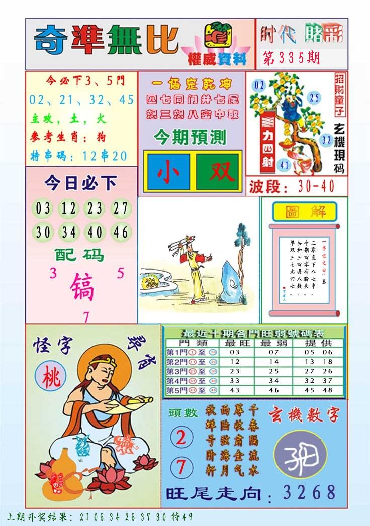331期 家 【鸡马牛】 野 【鼠龙虎】开 09鸡对 |