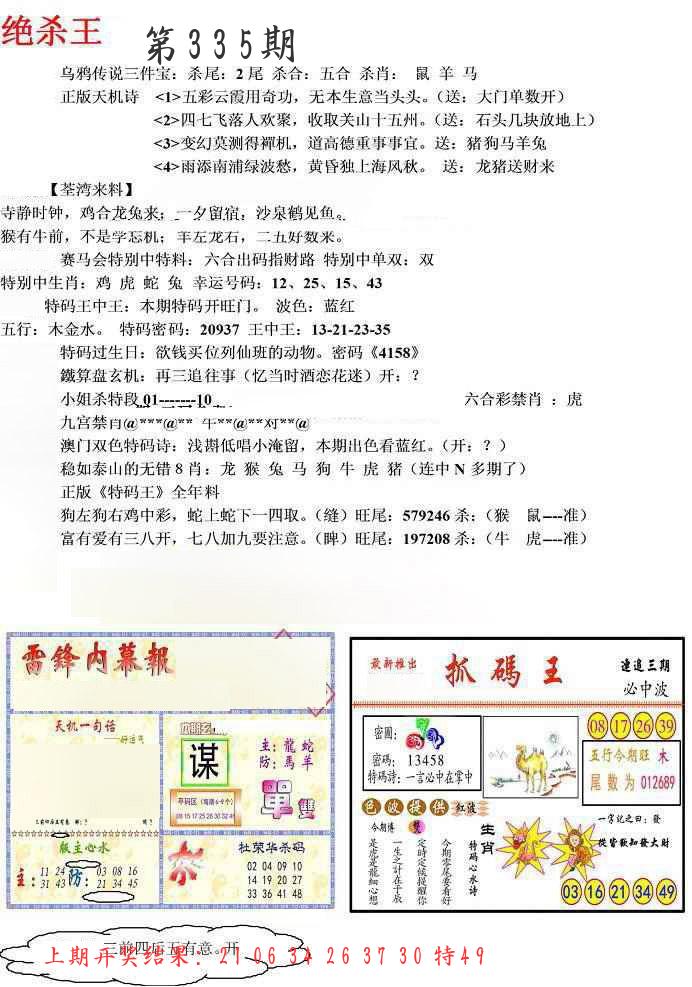 334期绝杀1.肖1.尾 【马肖5尾】 开 ??????? |