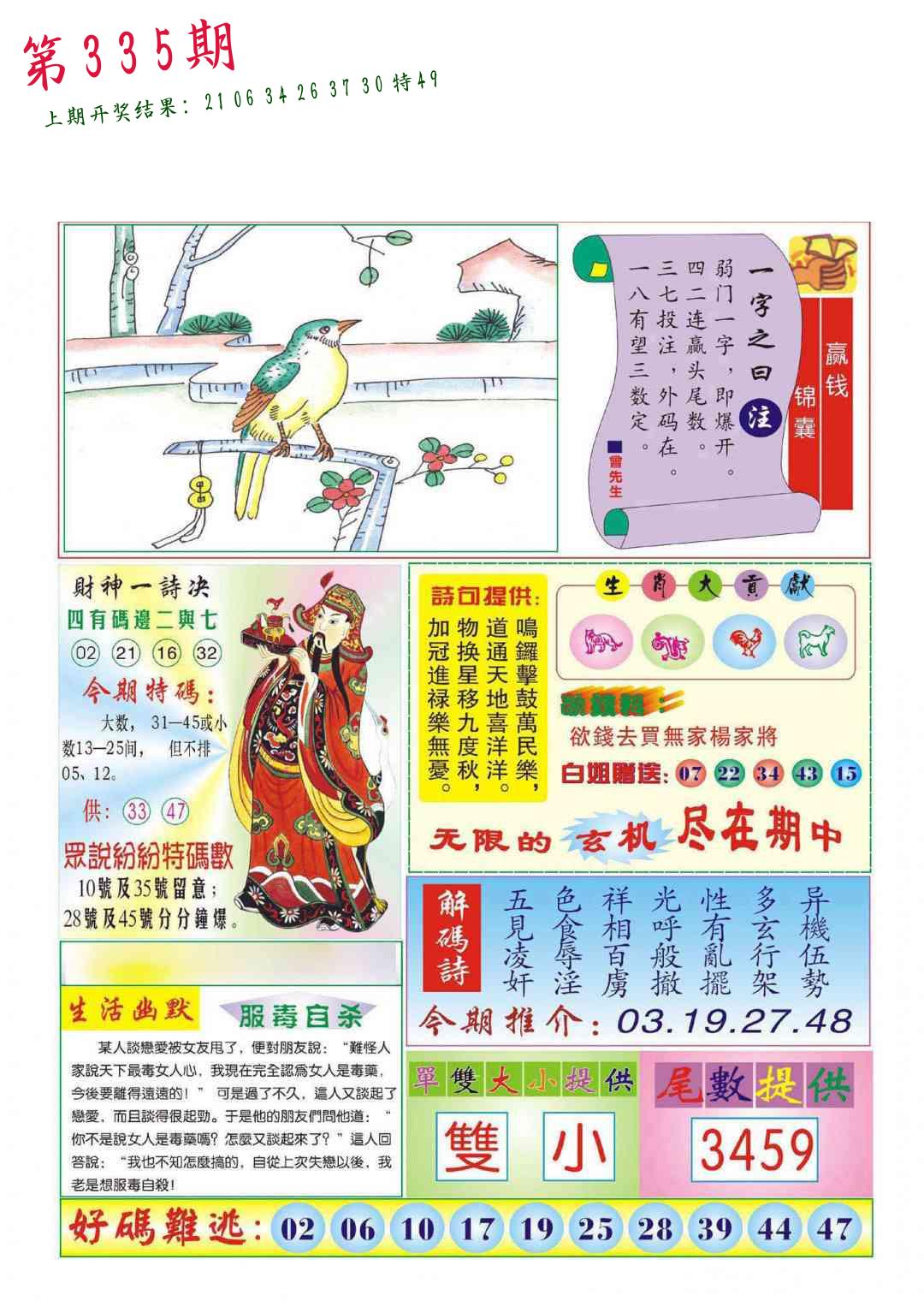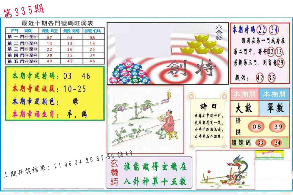 332期 家 【鸡狗羊】 野 【兔龙虎】开 15兔对 |