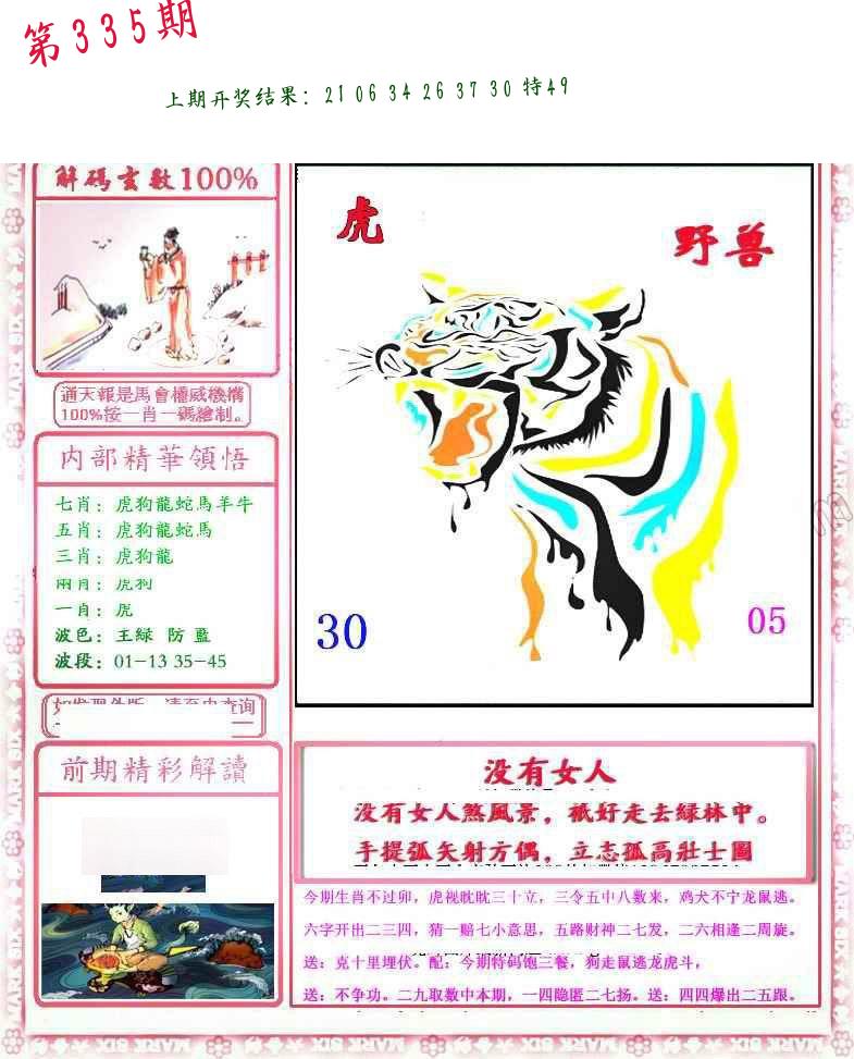 330期 家 【猪马牛】 野 【蛇虎兔】开 28虎对 |