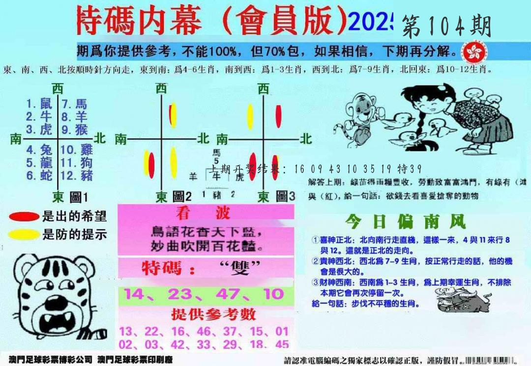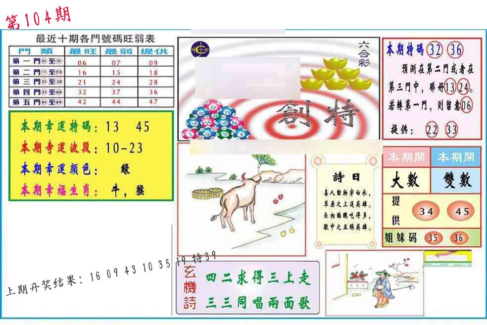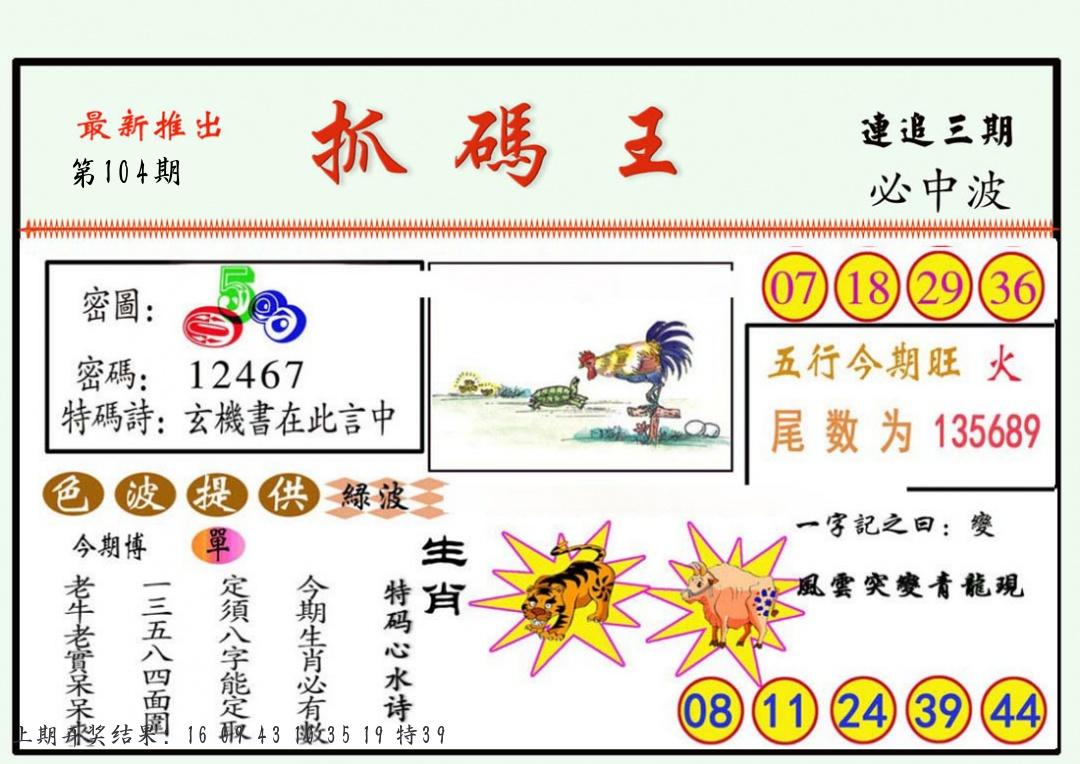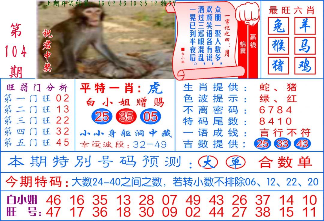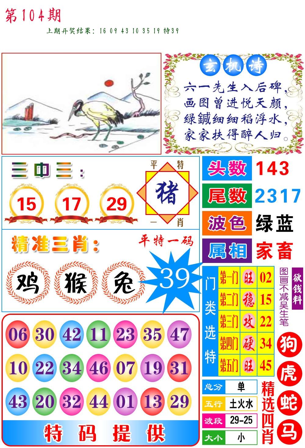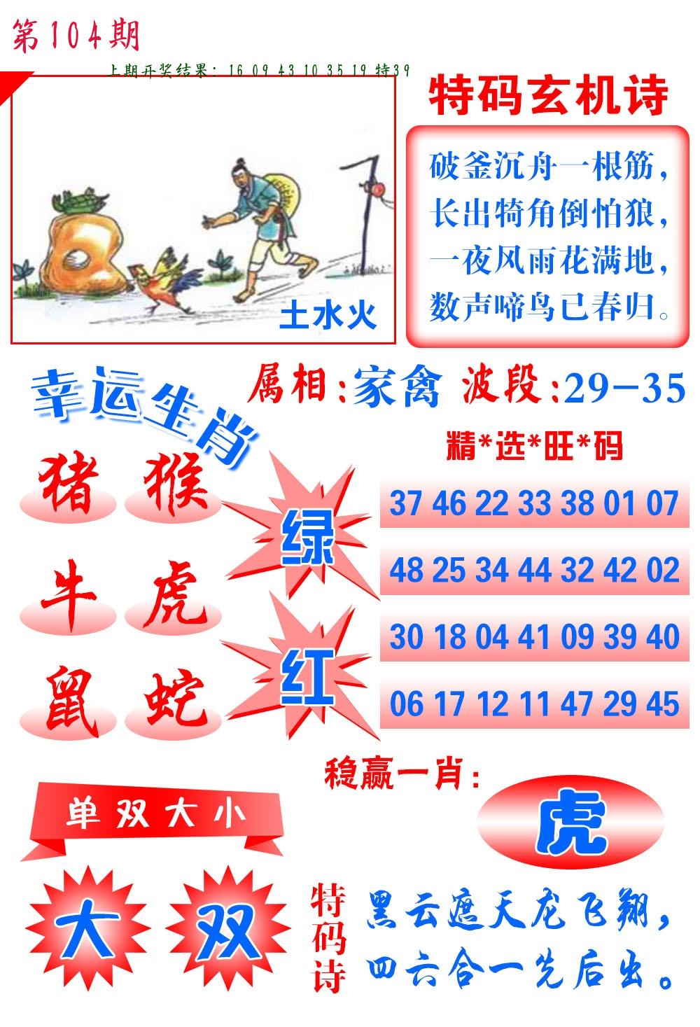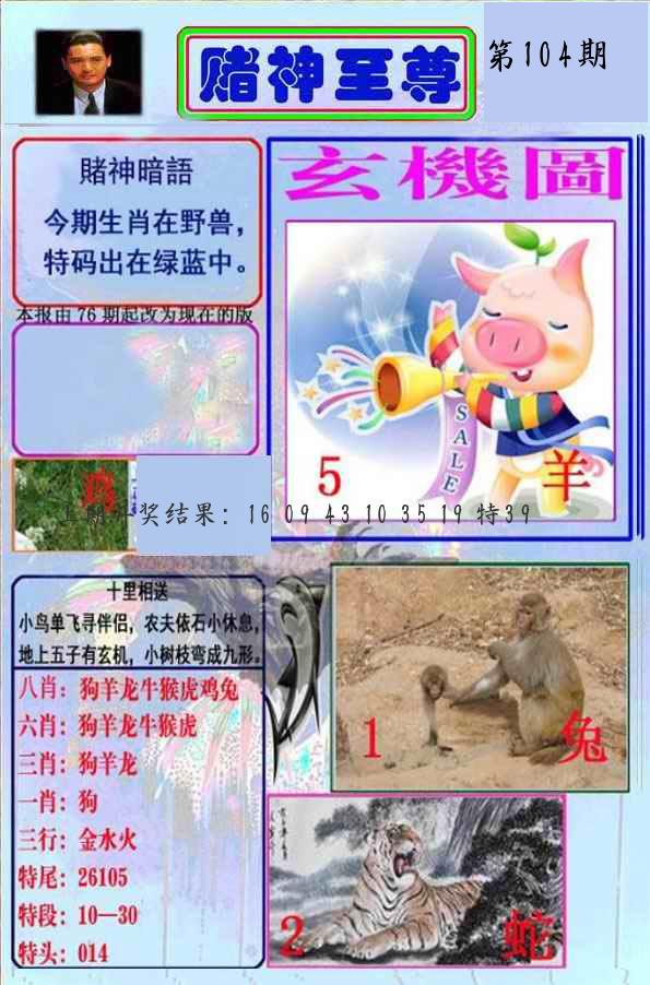 104期 家 【猪鸡狗】 野 【兔虎猴】开 ??????? |