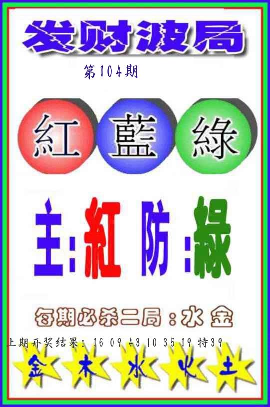 104期绝杀一波 【蓝波】 开 ??????? |