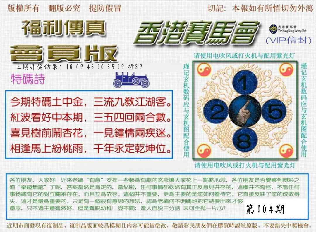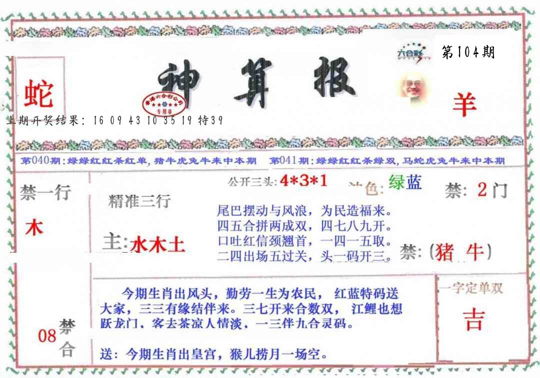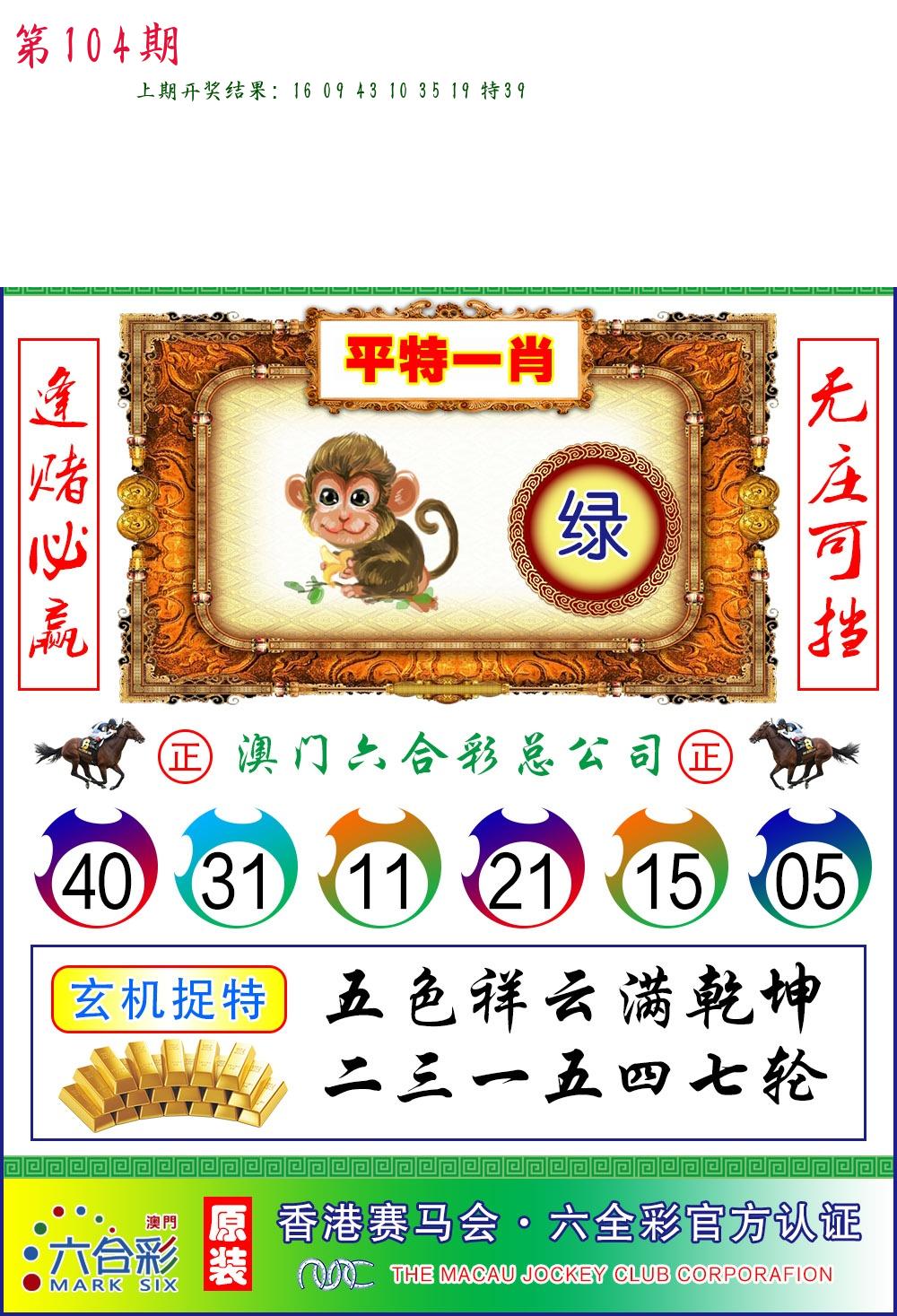 104期绝杀1.肖1.尾 【马肖6尾】 开 ??????? |