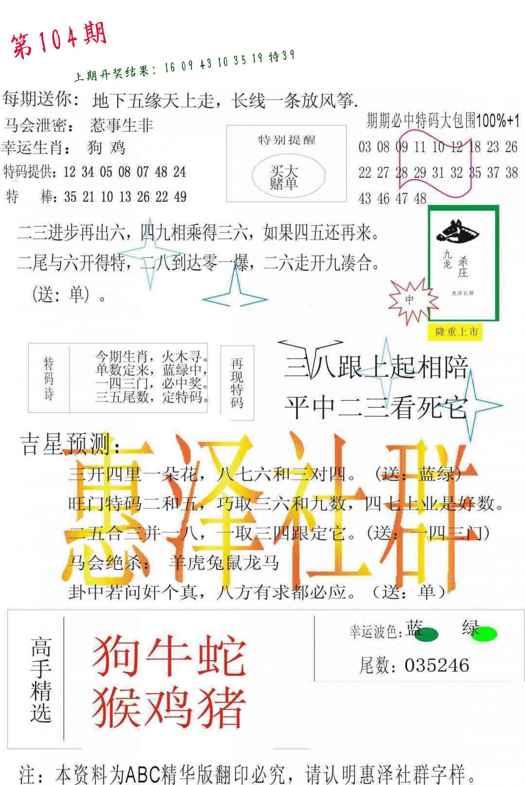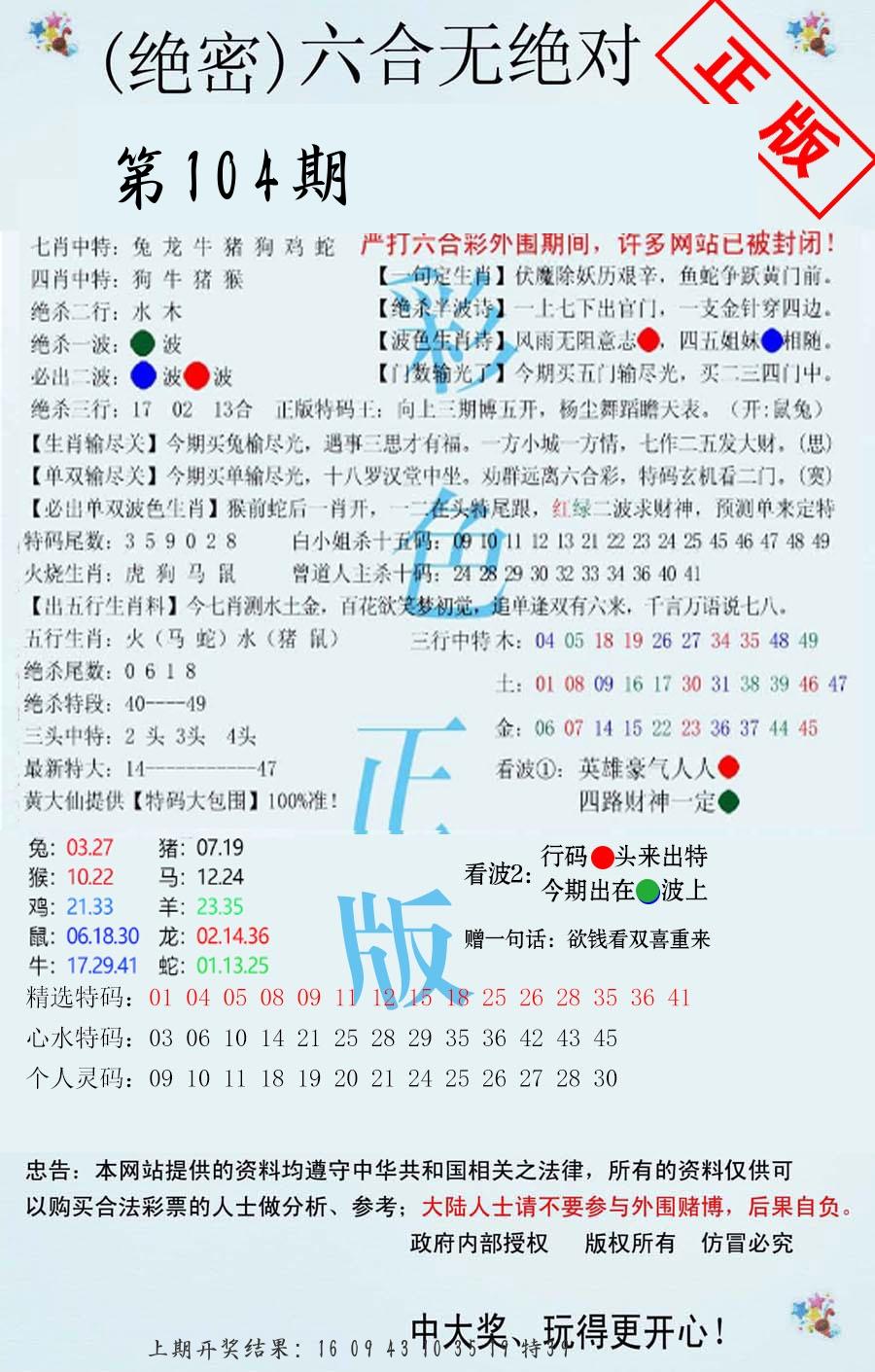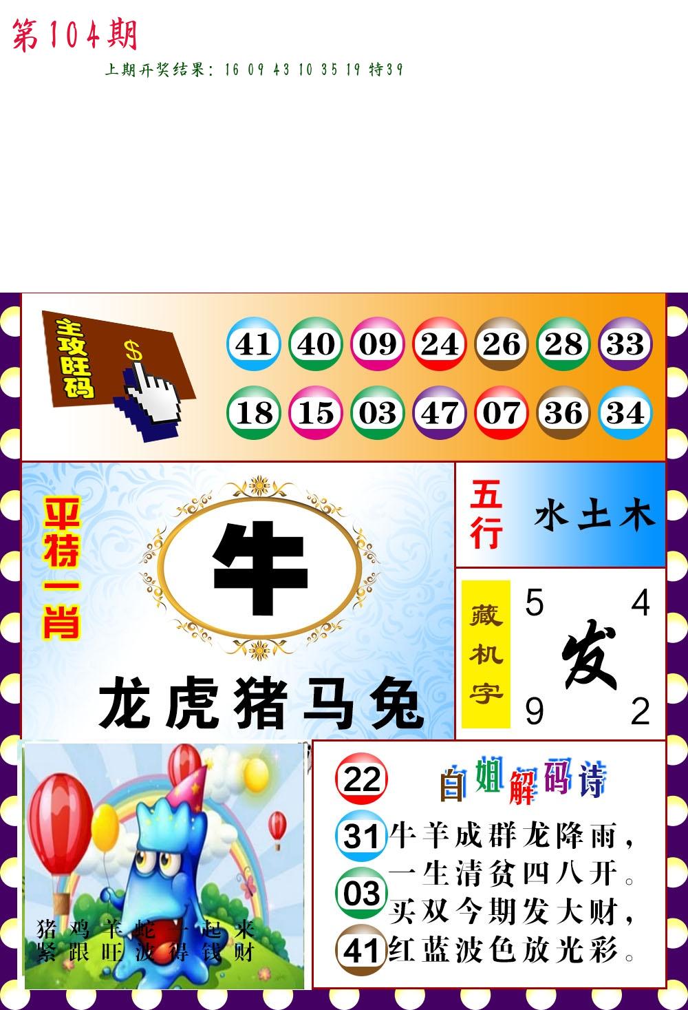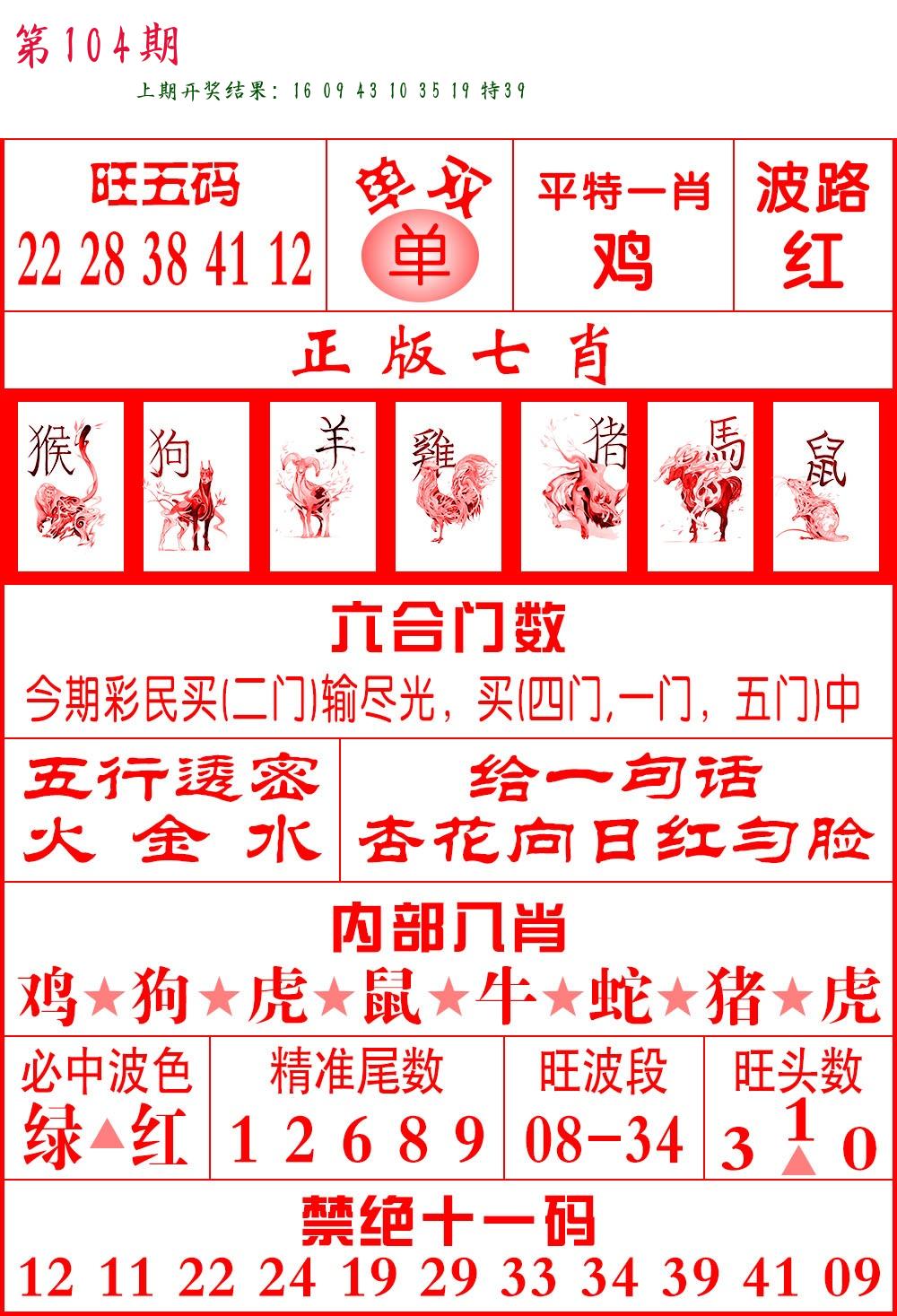 104期必中九肖 (??????)