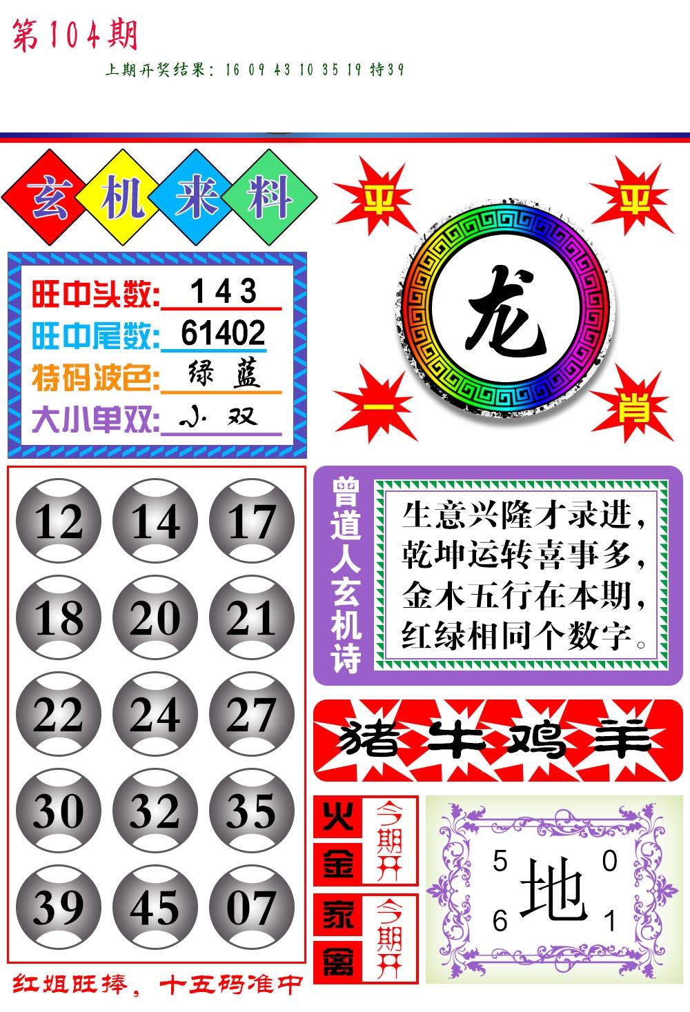 104期家野(2)肖 【家禽+龙蛇】 开 ??????? |